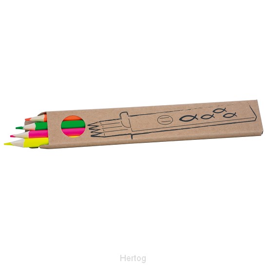 - De set van 4 kleurpotloden bestaat uit 4 neonkleuren elk 1x in de kleuren roze, geel, groen en oranje.