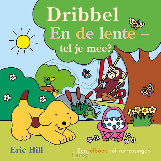 Eric Hill - Het is een zonnige lentedag en Dribbel wandelt in het park. Kijk door de doorkijkraampjes en help hem tot vijf tellen in dit ...