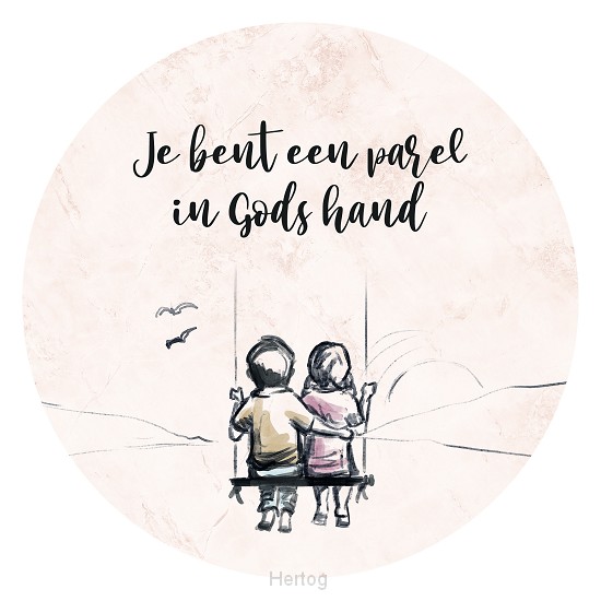 - Muurcirkel met opdruk: Je bent een parel in Gods hand
