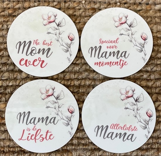 - Setje van 4 ronde onderzetters met rozenmotief.